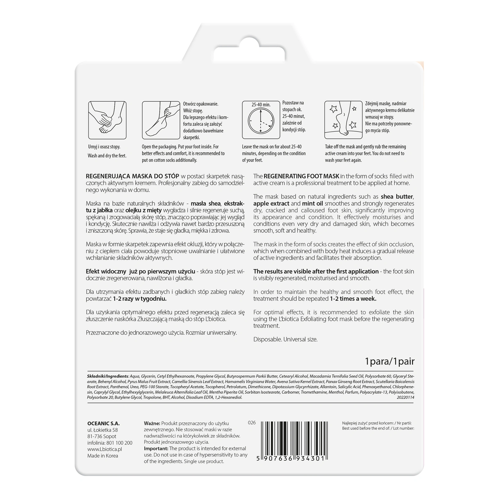Regenerująca maska do stóp, w postaci skarpet, nasączonych aktywnym kremem. Profesjonalny zabieg do samodzielnego wykonania w domu.