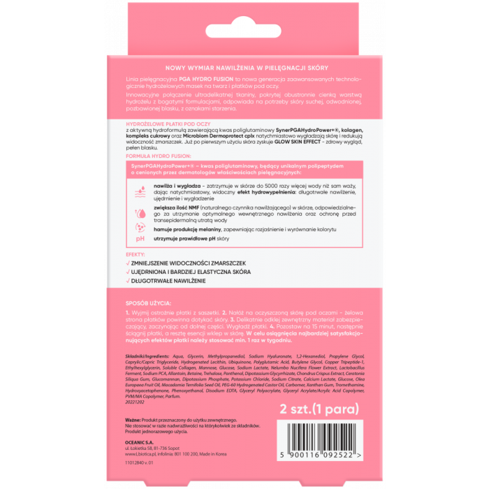 Składniki aktywne L’biotica PGA Hydro Fusion Hydrożelowe płatki pod oczy