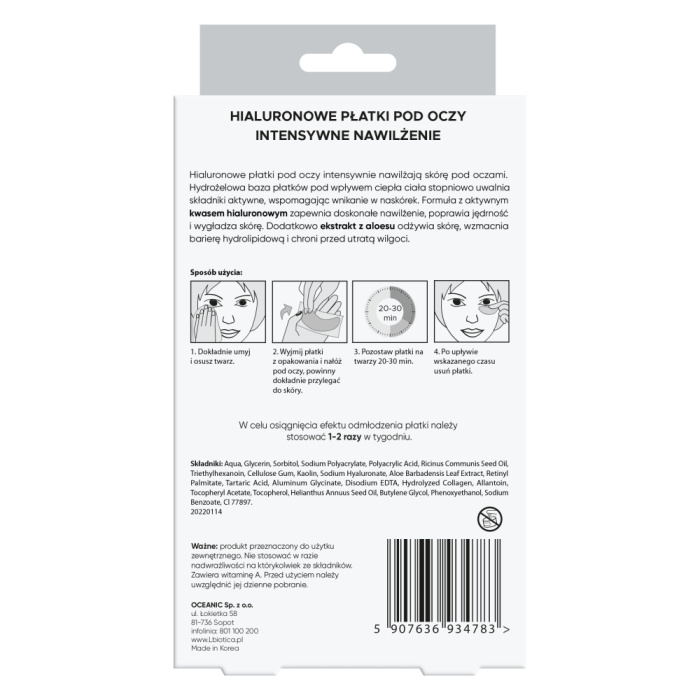 Hialuronowe – hydrożelowe PŁATKI POD OCZY intensywnie nawilżające skórę pod oczami.