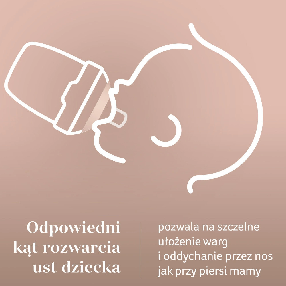 - Naturalność i sprężystość – delikatny pierścień na smoczku imituje otoczkę brodawki, zwiększając komfort ssania.