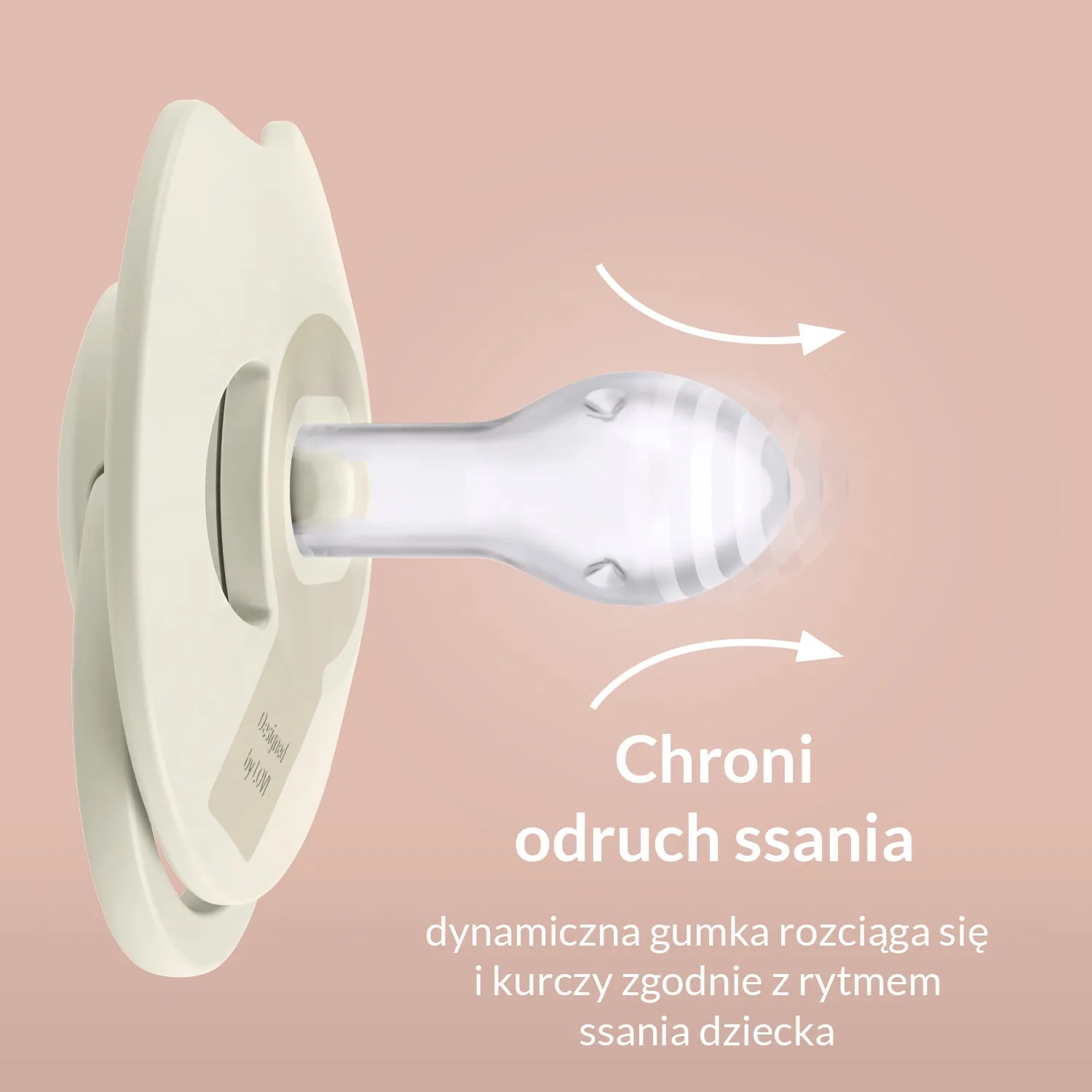Dynamiczna gumka silikonowa – rozciąga się i kurczy zgodnie z rytmem ssania, nie zaburzając naturalnego odruchu.
