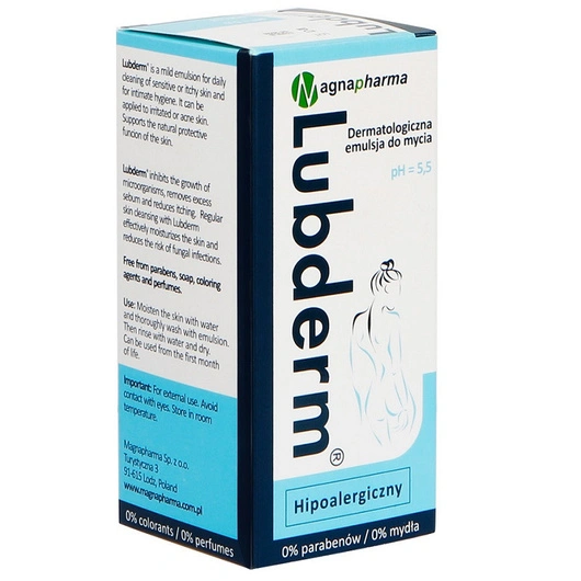 Lubderm® to dermatologiczna, hipoalergiczna emulsja przeznaczona do codziennej higieny skóry wrażliwej, skłonnej do podrażnień, alergii lub trądziku. Formuła została opracowana z myślą o jak największej tolerancji, bez dodatku parabenów, mydła, barwników i substancji zapachowych. Emulsja skutecznie usuwa zanieczyszczenia i nadmiar sebum, przy jednoczesnym działaniu łagodzącym i nawilżającym. Sprawdza się również w pielęgnacji skóry podatnej na infekcje grzybicze.