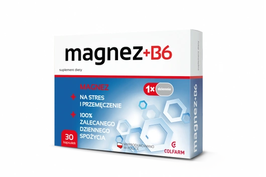 Suplement diety Colfarm Magnez + B6 to propozycja dla osób, które chcą zadbać o równowagę mineralną organizmu, szczególnie przy intensywnym tem­pie życia. Produkt łączy magnez i witaminę B6, dzięki czemu stanowi wygodny sposób na uzupełnienie codziennej diety o składniki wspierające prawidłowe funkcjonowanie mięśni, układu nerwowego oraz metabolizm energetyczny. To rozwiązanie szczególnie cenione przez osoby aktywne fizycznie lub pracujące umysłowo, które chcą ograniczyć uczucie zmęczenia i zadbać o regenerację organizmu.