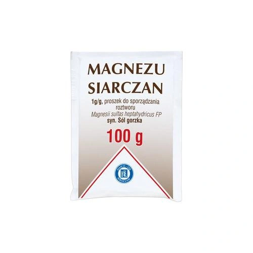 W opakowaniu znajduje się 100 g proszku Magnezu siarczan (sól gorzka). W skład produktu wchodzi magnezu siarczan siedmiowodny 100 g/100 g. Lek należy stosować według zaleceń zawartych w dołączonej do opakowania ulotce, chyba że lekarz je zmodyfikuje. Produkt przeznaczony jest do podania doustnego. Zaleca się stosowanie leku 1 raz na dobę, jednorazowo rozpuszczając około 10–15 g proszku (1 łyżka) w szklance wody i wypijając bezpośrednio po przygotowaniu. Efekt przeczyszczający leku pojawia się zazwyczaj po 3–12 godzinach od zastosowania produktu.