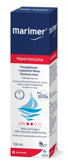 - 100%-owy roztwór hipertoniczny wody morskiej przeznaczony do udrożniania jamy nosowej w czasie obrzęku błon śluzowych i kataru. Produkt dla osób dorosłych.