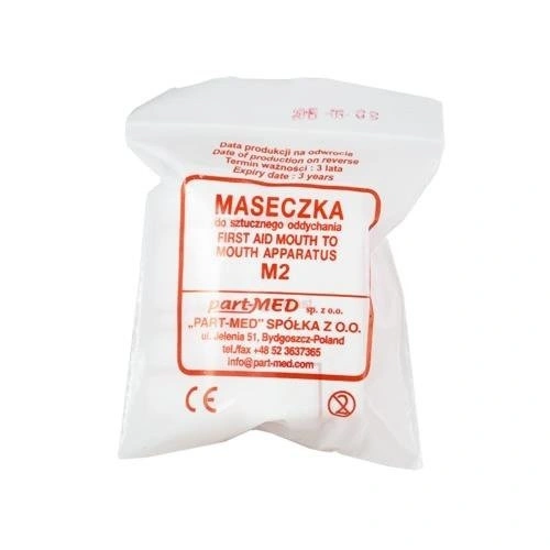 • Wyposażona w plastikowy ustnik i zastawkę dzięki czemu zapewnia pełną ochronę osoby wykonującej reanimację przed wydzielinami, zmniejsza ryzyko zakażeń.