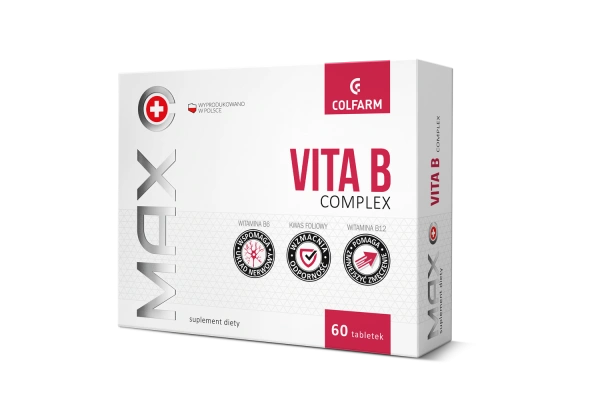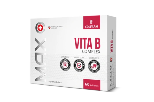 Suplement diety Vitaminum B Complex to zespół witamin z grupy B, które wykazują wielokierunkowe działanie na organizm. Preparat jest przeznaczony przede wszystkim regulacji aktywności układu nerwowego oraz budowaniu odporności. Niacyna, tiamina, biotyna uczestniczą w prawidłowym przebiegu czynności psychicznych (psychologicznych) oraz funkcjonowaniu układu nerwowego. Tymczasem witamina B6, kwas pantotenowy, ryboflawina, kwas foliowy i witamina B12 przyczyniają się do redukcji uczucia zmęczenia. Preparat wykazuje także wpływ immunostymulujący oraz immunomodulujący.