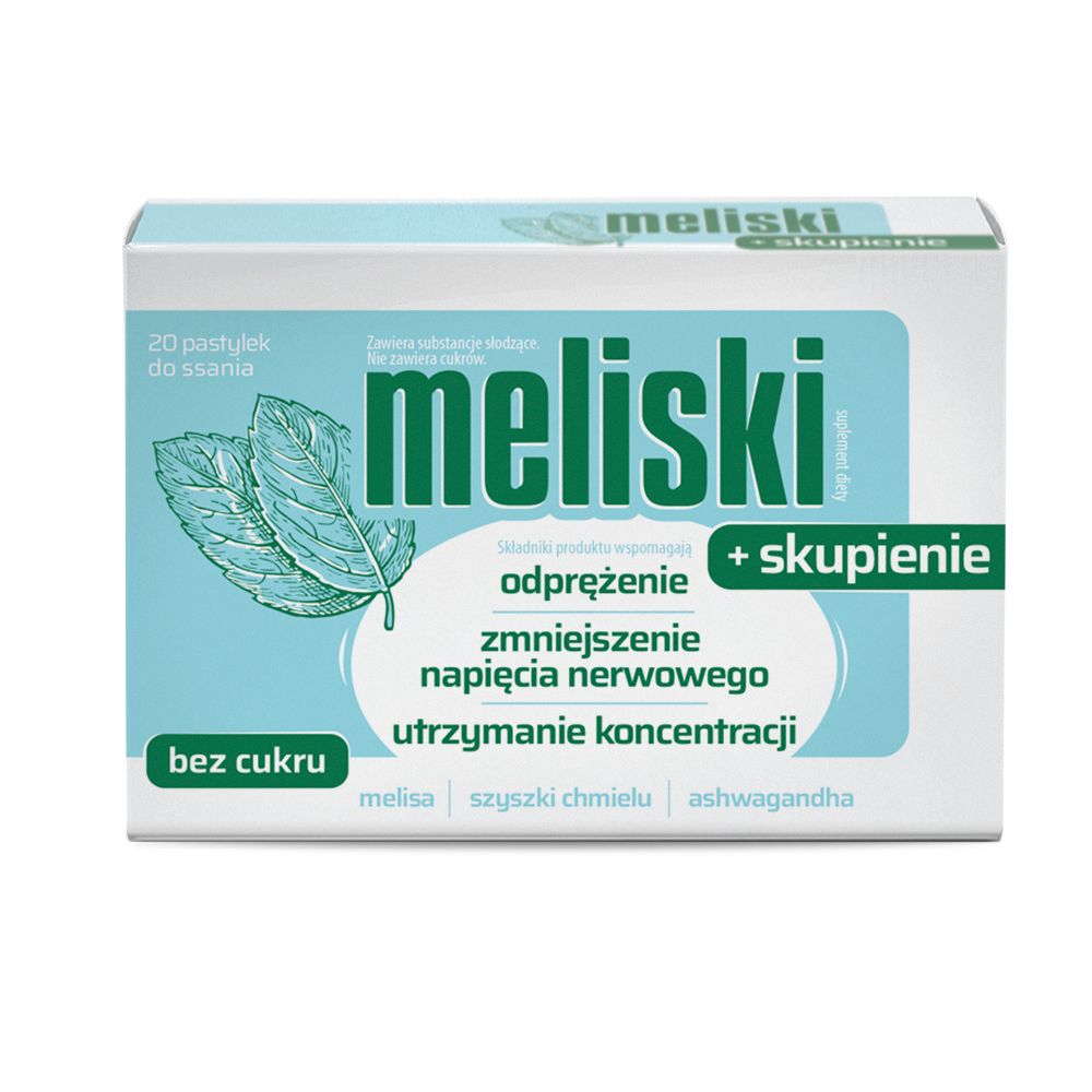 Meliski + Skupienie to suplement diety w formie pastylek do ssania, które wspierają odprężenie i koncentrację w sytuacjach stresowych. Formuła oparta na naturalnych ekstraktach roślinnych – melisie, chmielu i ashwagandzie – pomaga zmniejszyć napięcie nerwowe, poprawia samopoczucie i wspiera zdolności poznawcze. Pastylki mają cytrynowo-ziołowy smak, są bez dodatku cukru i mogą być stosowane w ciągu dnia jako wsparcie w momentach spadku koncentracji.