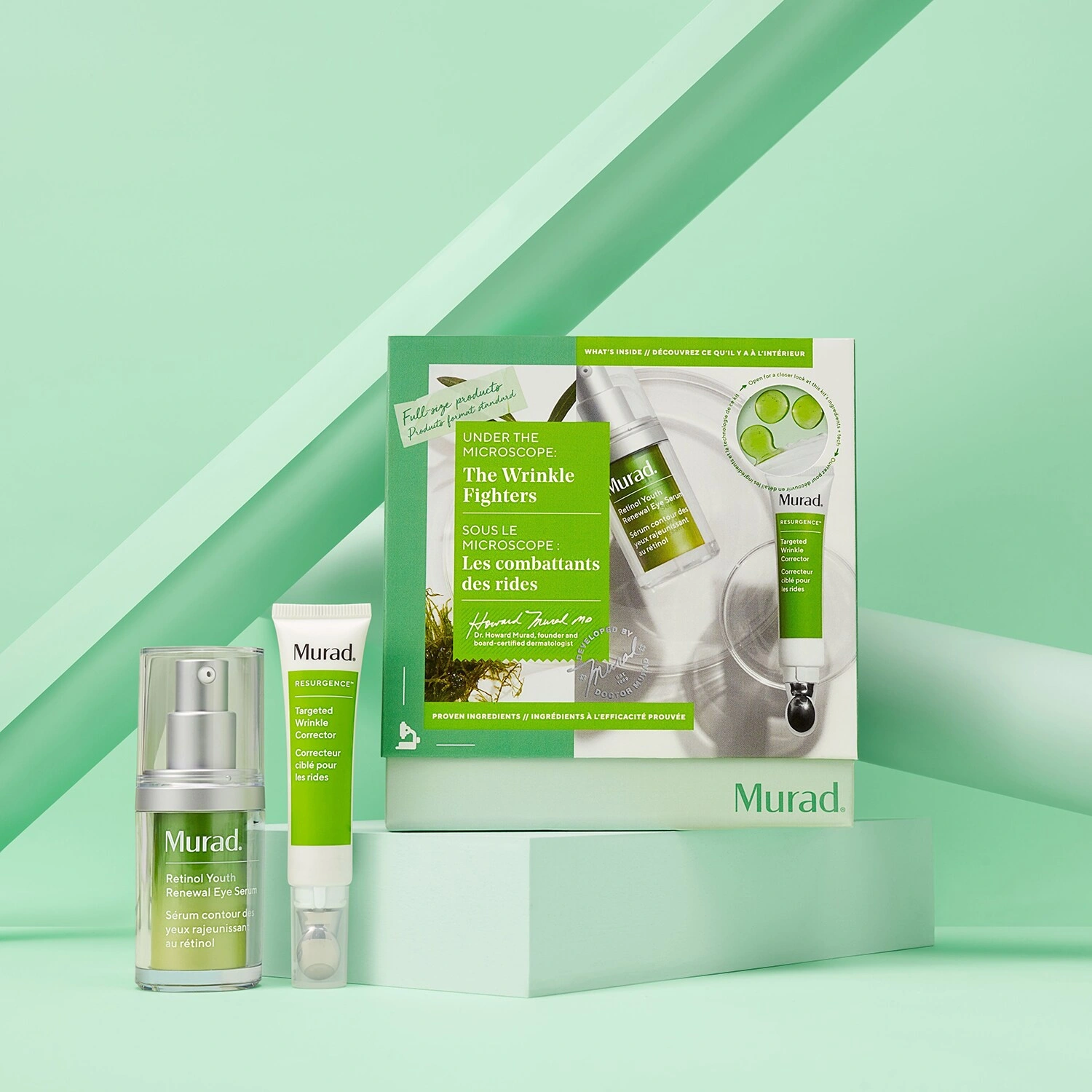 MURAD Zestaw The Wrinkle Fighters to kompleksowa pielęgnacja anti-aging, idealna dla osób poszukujących szybkich i długoterminowych efektów w walce ze zmarszczkami i oznakami starzenia.