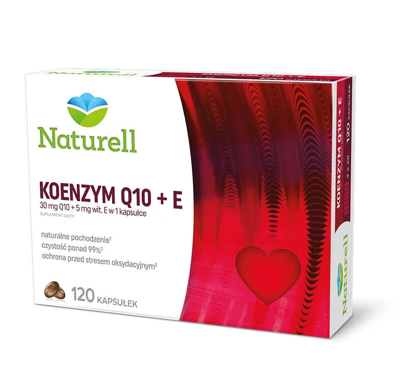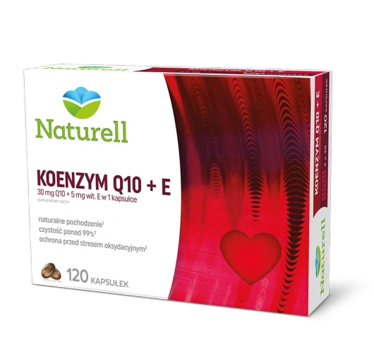 Naturell Koenzym Q10 + E to suplement diety przeznaczony dla osób, które chcą w prosty sposób uzupełnić dietę w koenzym Q10 pochodzenia naturalnego oraz witaminę E. Produkt zawiera koenzym Q10 otrzymywany metodą naturalnej fermentacji, dzięki czemu charakteryzuje się wysoką czystością i zawartością formy izomeru występującej fizjologicznie w organizmie. Dodatek witaminy E pomaga w ochronie komórek przed stresem oksydacyjnym, co sprawia, że suplement stanowi praktyczne uzupełnienie codziennej diety. Dzięki formie kapsułek olejowych składniki rozpuszczalne w tłuszczach są podawane w sposób sprzyjający ich przyswajaniu, co może stanowić wygodne rozwiązanie dla osób dbających o wsparcie antyoksydacyjne organizmu.