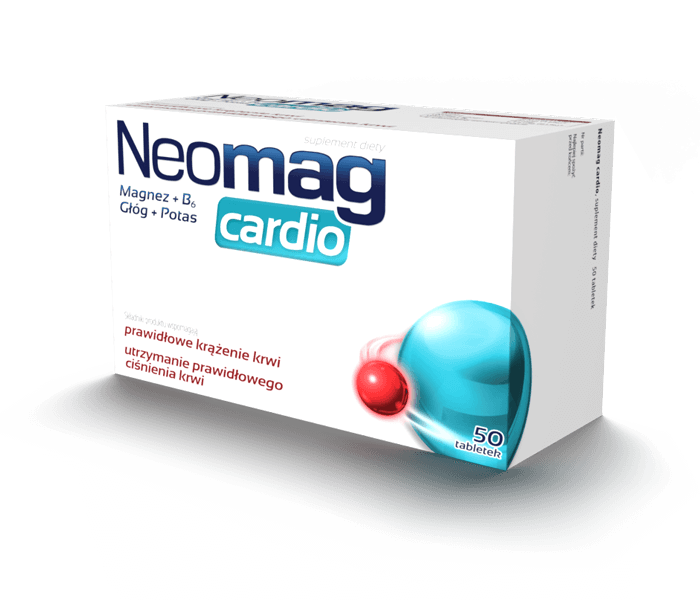NeoMag Cardio to suplement diety opracowany z myślą o osobach dorosłych, które chcą w świadomy sposób uzupełniać dietę w magnez, potas oraz witaminę B6. Formuła została wzbogacona o wyciąg z owocu głogu, tradycyjnie stosowanego jako element diety wspierającej prawidłowe krążenie. Produkt sprawdzi się szczególnie u osób prowadzących aktywny tryb życia, narażonych na stres, zmęczenie lub zwiększone zapotrzebowanie na składniki mineralne. Regularne stosowanie, zgodnie z zaleceniami producenta, pozwala uzupełnić codzienną dietę w kluczowe mikroskładniki, istotne dla prawidłowego funkcjonowania organizmu.