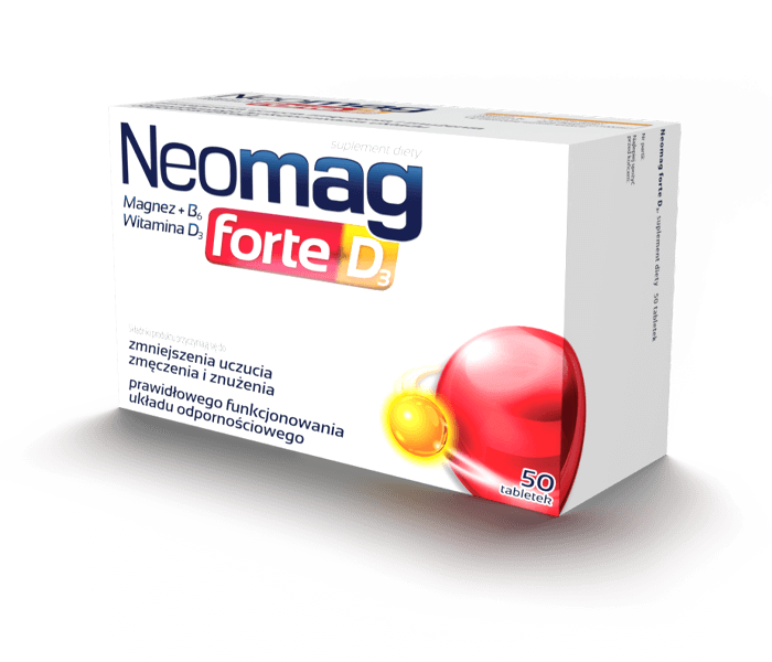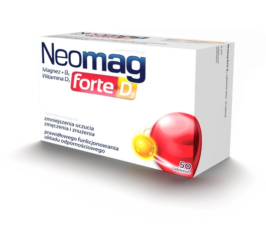 W codziennym życiu, pełnym stresu i zmęczenia, warto wspierać organizm składnikami, które pomagają w zachowaniu sił witalnych i prawidłowej pracy układu nerwowego. NeoMag Forte D3 to suplement diety opracowany z myślą o dorosłych, którzy chcą uzupełnić dietę w magnez, witaminę D3 i witaminę B6. Formuła preparatu wspiera m.in. pracę mięśni, funkcje psychologiczne oraz zdrowie kości – to wsparcie dla aktywnego trybu życia i codziennego funkcjonowania.