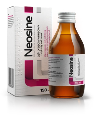Neosine 250 mg/5 ml to syrop przeciwwirusowy i immunomodulujący z inozyną pranobeks, polecany wspomagająco u osób o obniżonej odporności w okresach nawracających infekcji górnych dróg oddechowych oraz w leczeniu opryszczki warg i skóry twarzy (HSV) u pacjentów, u których wcześniej rozpoznano zakażenie wirusem opryszczki pospolitej. Praktyczna postać syropu z miarką ułatwia precyzyjne dawkowanie u dorosłych i dzieci od 1. roku życia. To rozwiązanie, po które możesz sięgnąć w sezonie przeziębień – kiedy chcesz wzmocnić odpowiedź immunologiczną organizmu i szybciej poradzić sobie z nawracającą opryszczką.