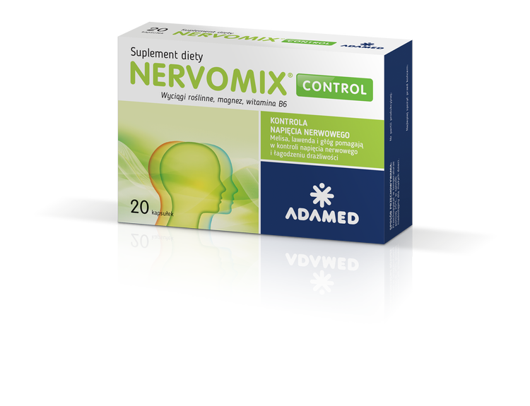 Suplement diety NERVOMIX CONTROL zawiera naturalne składniki, które wspierają: kontrolowanie napięcia nerwowego, łagodzenie rozdrażnienia i wyciszenie organizmu, utrzymanie dobrego samopoczucia.