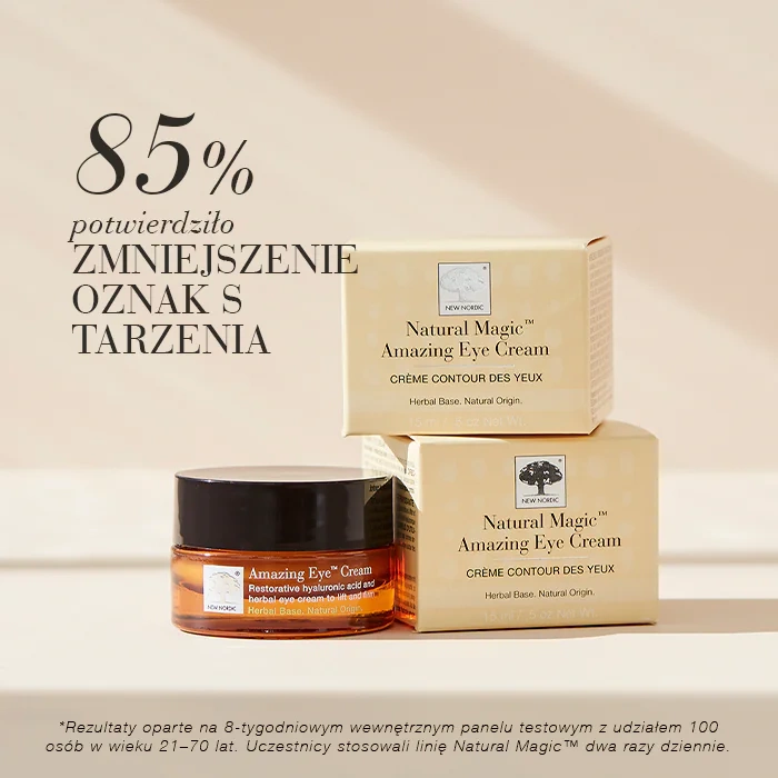 Natural Magic Amazing Eye Cream to wielokrotnie nagradzany, regenerujący krem pod oczy, stworzony specjalnie z myślą o pielęgnacji delikatnej skóry wokół oczu. Jedwabista, aksamitna konsystencja otula skórę, intensywnie ją nawilżając i odżywiając. Dzięki połączeniu kwasu hialuronowego, astaksantyny, rokitnika oraz olejów roślinnych, Natural Magic Amazing Eye Cream wygładza zmarszczki, redukuje cienkie linie i zapewnia widoczny efekt liftingu. Regularne stosowanie sprawia, że spojrzenie staje się jaśniejsze, a skóra bardziej napięta, elastyczna i promienna.