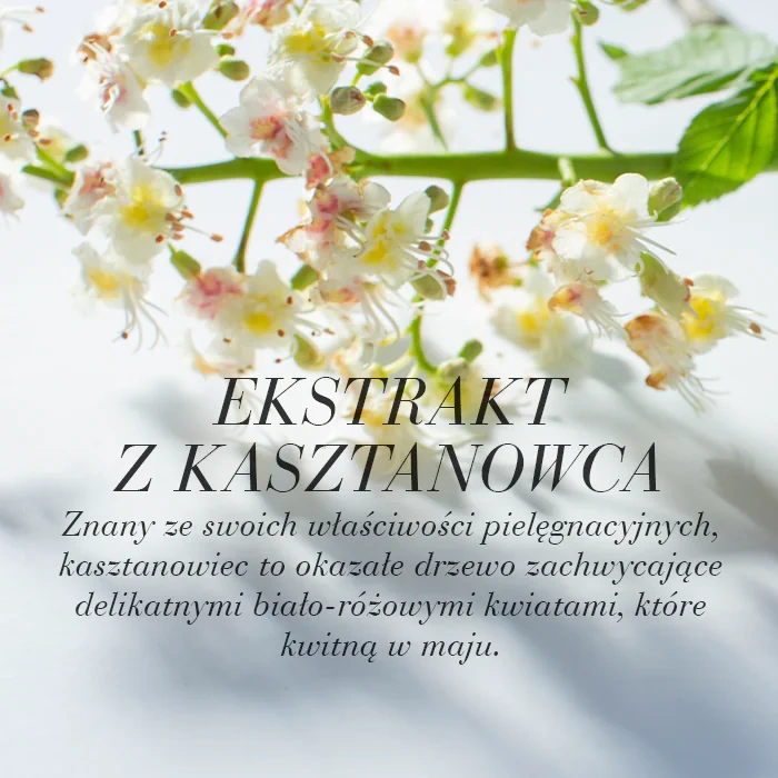Ekstrakt z kasztanowca (Aesculus Hippocastanum) – zmniejsza opuchnięcia i wspiera mikrokrążenie.