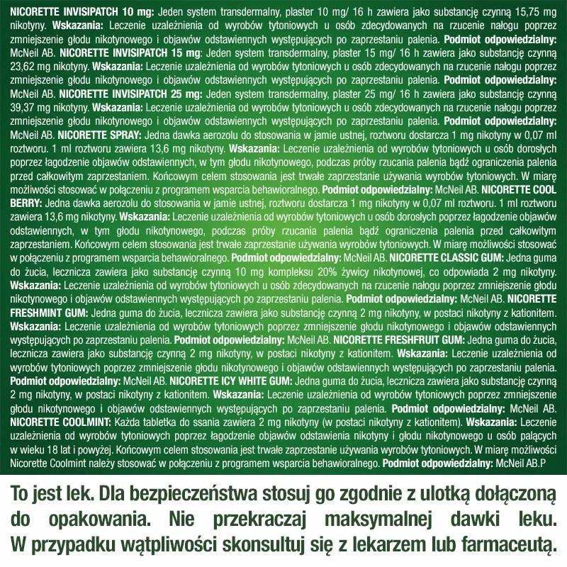 Ciąża/karmienie: decyzja po konsultacji z lekarzem (nikotyna przenika do mleka matki).