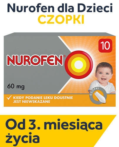 Objawowe leczenie bólu o nasileniu słabym do umiarkowanego oraz objawowe leczenie gorączki. Produkt leczniczy Nurofen dla dzieci w czopkach stosuje się, gdy podanie produktu w formie doustnej jest niemożliwe lub gdy występują wymioty.