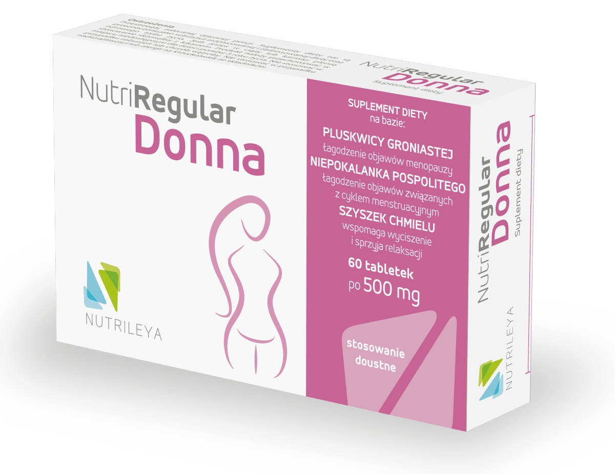 Kobiecy organizm przechodzi przez różne etapy, które wymagają szczególnej troski i zrozumienia. NutriRegular Donna to zaawansowany suplement diety, stworzony z myślą o kobietach pragnących odzyskać komfort życia zarówno w okresie dojrzałości, jak i podczas comiesięcznych cykli. Starannie opracowana receptura łączy w sobie siłę tradycyjnych ziół z nowoczesną standaryzacją składników, co gwarantuje powtarzalną jakość i precyzyjne działanie. Dzięki obecności niepokalanka i pluskwicy groniastej, preparat staje się naturalnym wsparciem w łagodzeniu uciążliwych sygnałów wysyłanych przez organizm, takich jak nagłe uderzenia gorąca, nadmierna potliwość czy drażliwość. To idealny wybór dla pań, które szukają bezpiecznej alternatywy lub uzupełnienia diety w składniki wspomagające stabilizację nastroju i regenerujący sen.