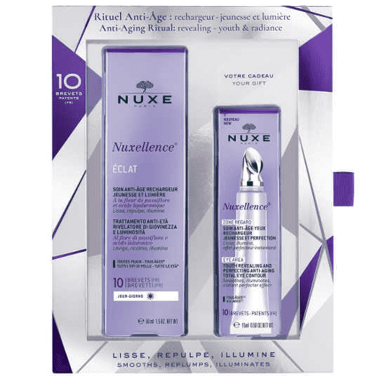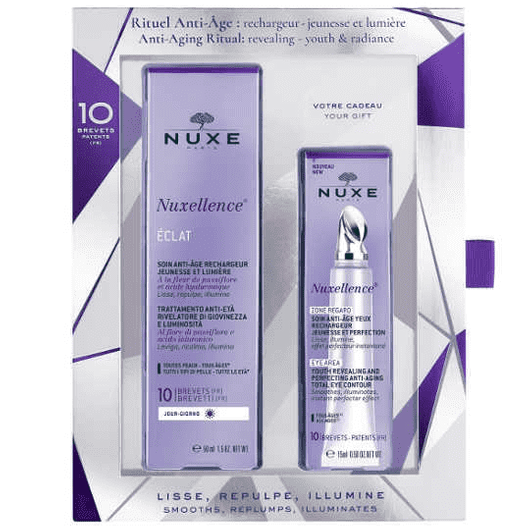 NUXE Nuxellence Eclat, dawniej Jeunesse, to preparat dedykowany osobom, chcącym zahamować procesy starzenia się skóry. Stanowi kompozycję 10 opatentowanych substancji czynnych, które dostarczają komórkom energię niezbędną do ich właściwego funkcjonowania oraz wspomagają ich biologiczną odnowę. Co więcej, poprawiają gęstość i zwartość cery, ograniczają utratę wody oraz zmniejszają widoczność zmarszczek. Formułę kremu wzbogacają korygujące pigmenty, które ujednolicają koloryt oraz rozświetlają skórę, przywracając jej młody wygląd.