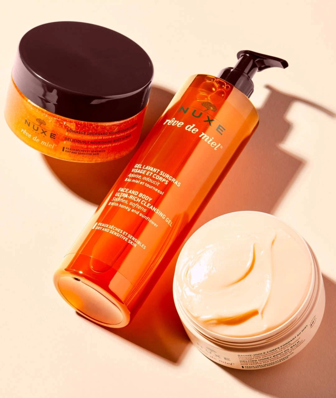 Idealny do codziennego stosowania dla skóry suchej i wrażliwej. Wybierz NUXE Reve De Miel i ciesz się zdrową, nawilżoną i ukojoną skórą każdego dnia.