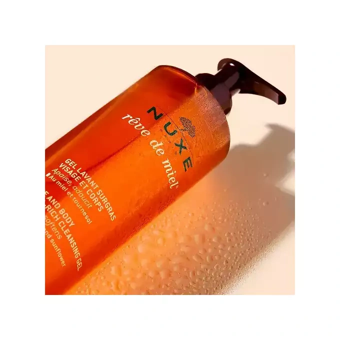 - NUXE Reve De Miel to ultrabogaty żel do mycia twarzy i ciała, który skutecznie oczyszcza skórę, jednocześnie zapewniając jej nawilżenie i ukojenie.