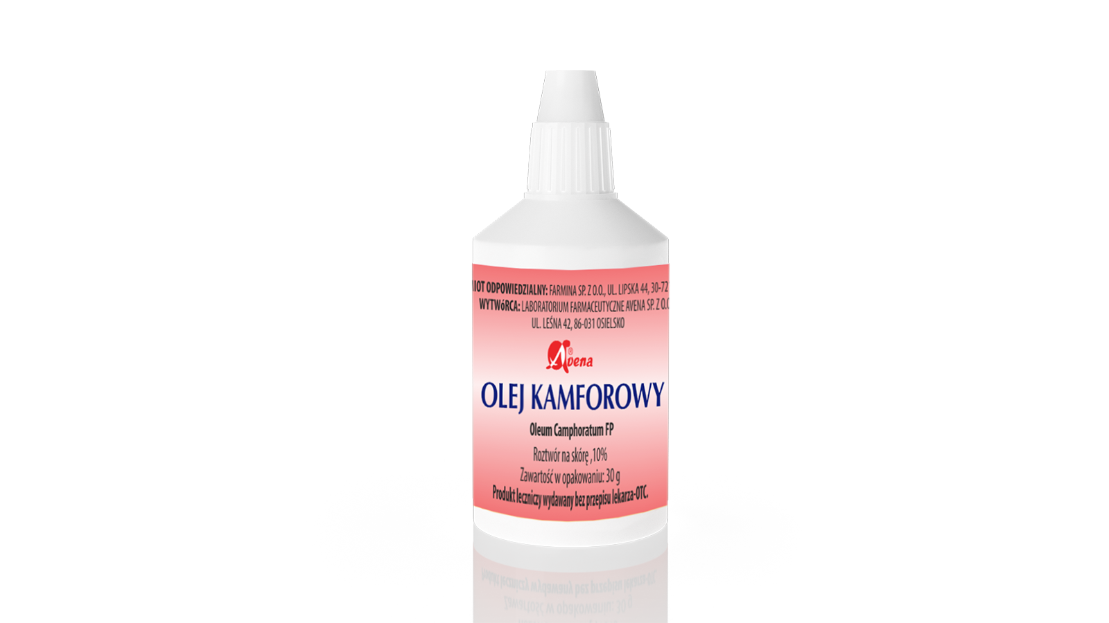 Olej kamforowy działa rozgrzewająco i przeciwbólowo. Działając drażniąco na skórę powoduje jej miejscowe przekrwienie.