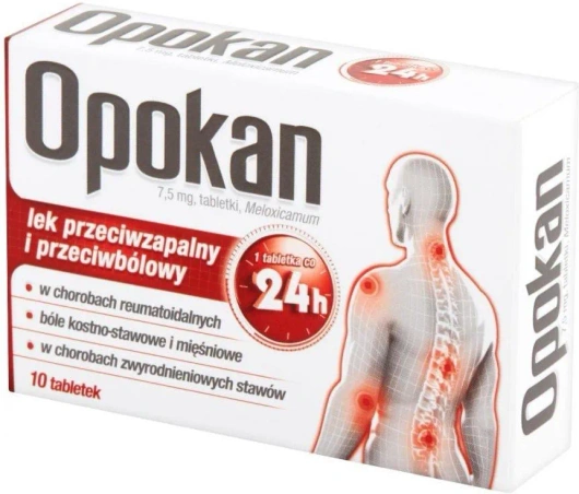 - Lek Opokan zawiera substancję meloksykam, która należy do grupy niesteroidowych leków przeciwzapalnych o działaniu przeciwzapalnym, przeciwbólowym i przeciwgorączkowym.