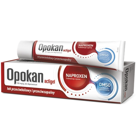 Opokan Actigel to lek przeciwbólowy i przeciwzapalny w postaci żelu do stosowania na skórę, zawierający substancję czynną naproksen oraz DSMO – substancję pomocniczą zwiększającą wchłanianie, dzięki czemu szybko przynosi ulgę w bólu.