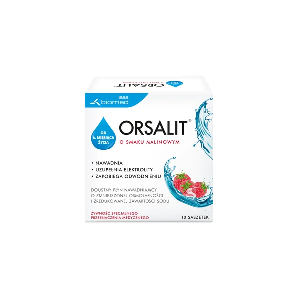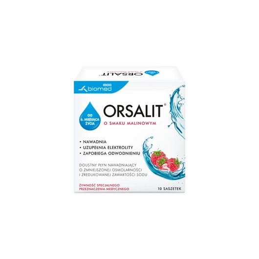 ORSALIT to doustny płyn nawadniający o zmniejszonej osmolarności i składzie zgodnym z zaleceniami WHO/UNICEF*. Posiada przyjemny, malinowy smak. Jego zadaniem jest uzupełnianie płynów i składników mineralnych, utraconych głównie w wyniku biegunki lub wymiotów.
