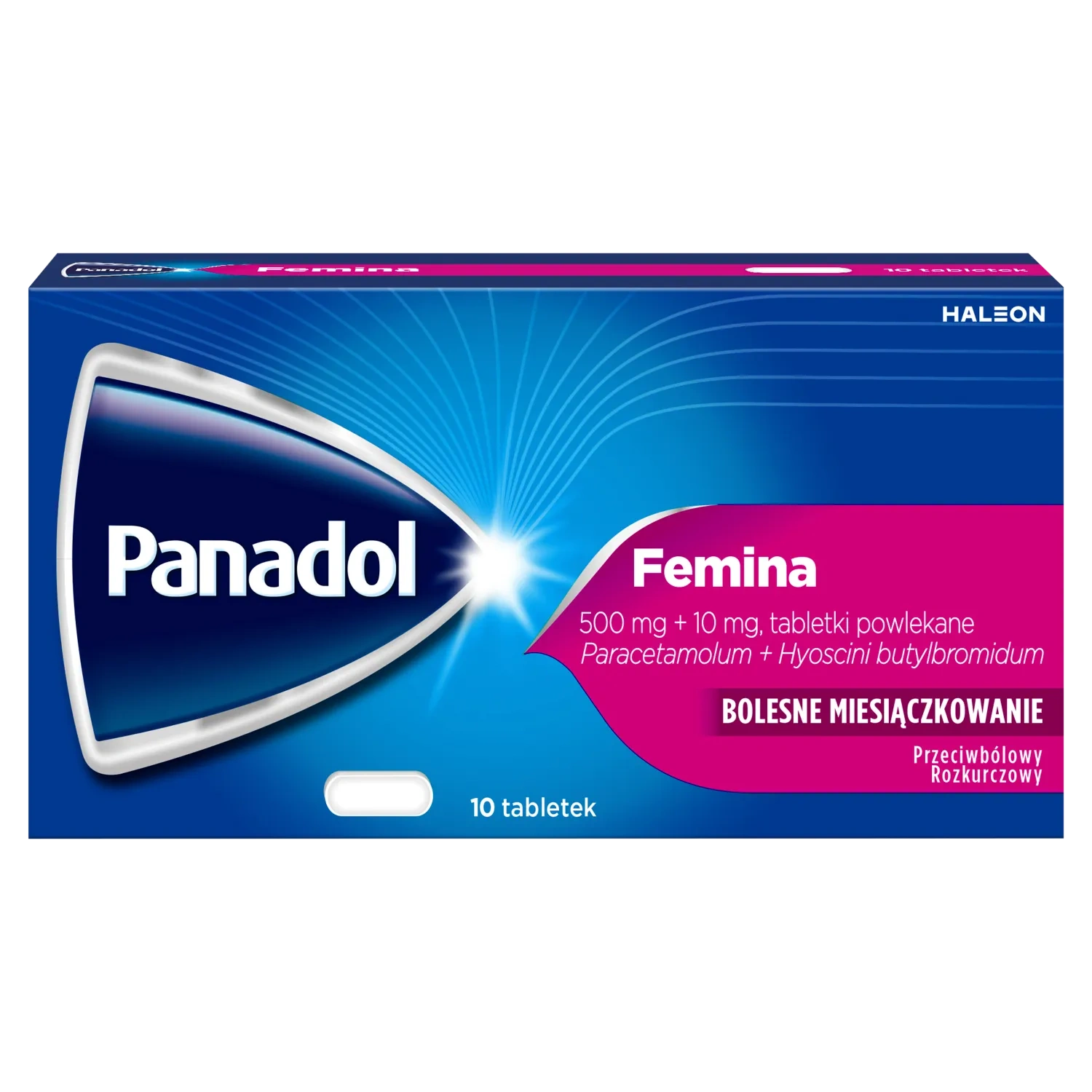 Panadol Femina to złożony produkt leczniczy zawierający paracetamol i butylobromek hioscyny.