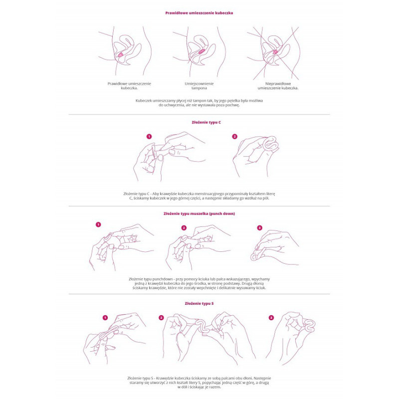 Złóż kubeczek wybraną techniką (np. w literę C), wprowadź do pochwy tak, aby żadna część nie wystawała na zewnątrz.