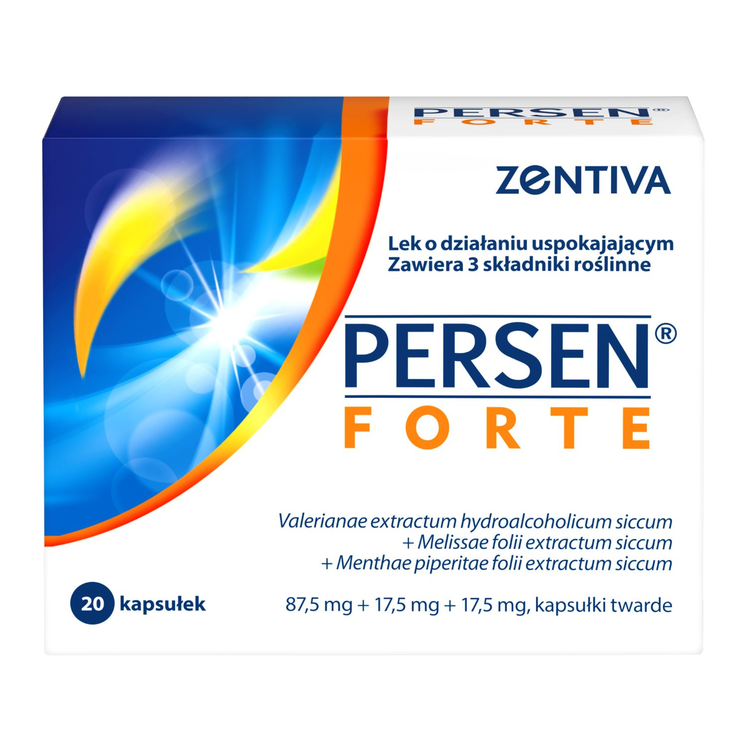 Persen forte jest tradycyjnym lekiem roślinnym przeznaczonym do stosowania w określonych wskazaniach, wynikających wyłącznie z jego długotrwałego stosowania. Persen forte zawiera wyciągi z korzenia kozłka, liści melisy i liści mięty tradycyjnie stosowane w lekach o działaniu uspokajającym.