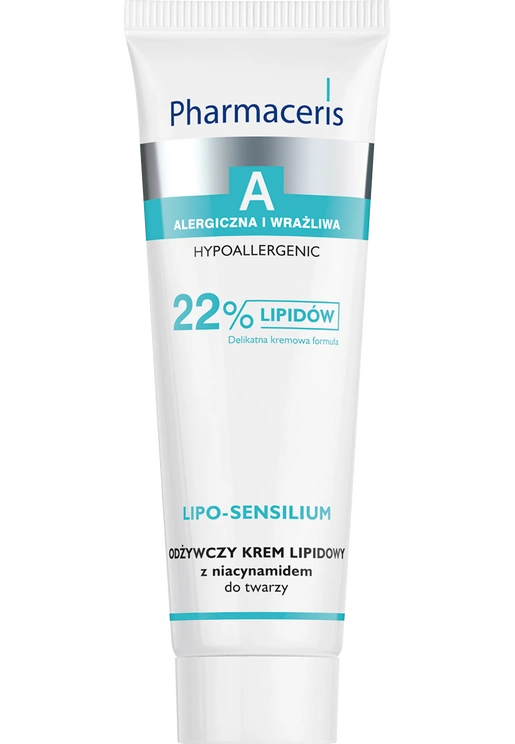Pharmaceris A Lipo-Sensilium Odżywczy krem lipidowy z niacynamidem to hipoalergiczny krem do twarzy stworzony z myślą o codziennej pielęgnacji skóry nadwrażliwej, suchej i podatnej na alergie. Dzięki bogatej, ale lekkiej formule z wysoką zawartością lipidów (22%) i niacynamidu intensywnie regeneruje, odżywia i przywraca komfort nawet najbardziej wymagającej skórze.
