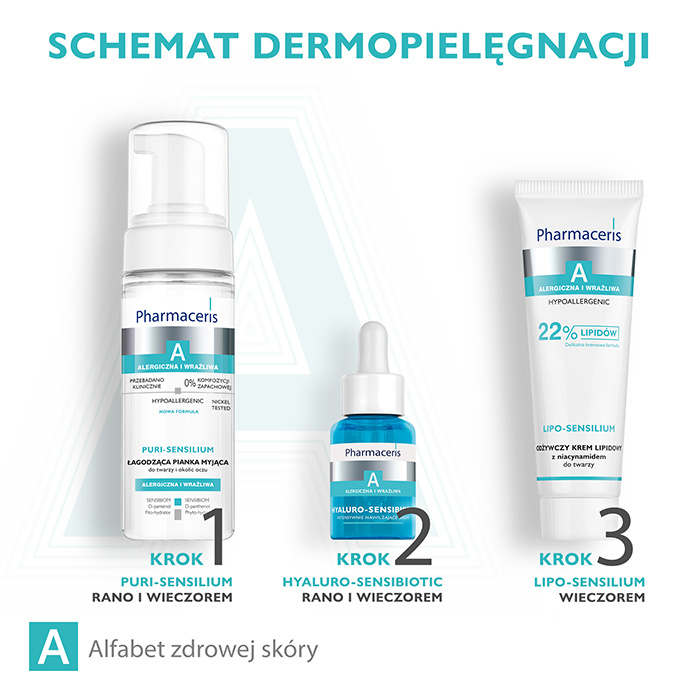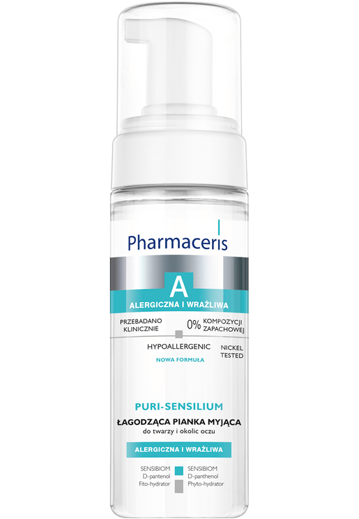 Pharmaceris A Puri-Sensilium Łagodząca pianka myjąca to hipoalergiczny dermokosmetyk przeznaczony do codziennego oczyszczania i demakijażu skóry twarzy oraz delikatnych okolic oczu. Opracowana z myślą o skórze szczególnie wrażliwej, alergicznej i nadreaktywnej, pianka skutecznie usuwa zanieczyszczenia, makijaż (również wodoodporny) i resztki filtrów SPF, jednocześnie pielęgnując i łagodząc podrażnienia.