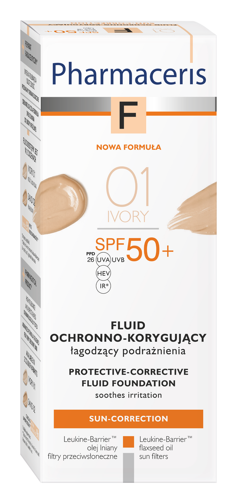 PHARMACERIS F LUID OCHRONNO-KORYGUJĄCY Z NAJWYŻSZĄ OCHRONĄ SPF 50+ 01 Ivory