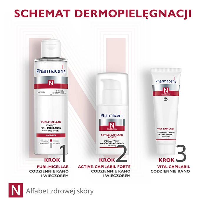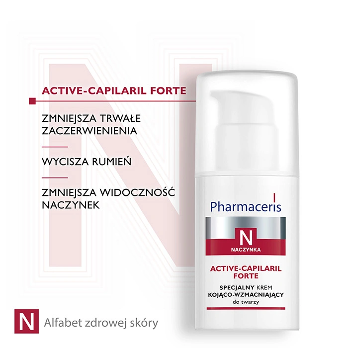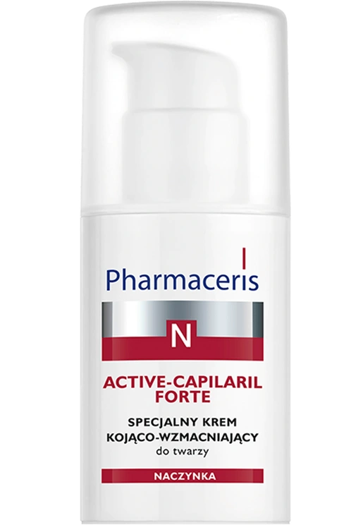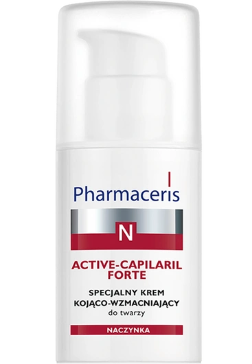 Pharmaceris N Active-Capilaril Forte to specjalistyczny krem o działaniu kojąco-wzmacniającym, stworzony z myślą o codziennej pielęgnacji skóry naczynkowej, z utrwalonym zaczerwienieniem, widocznymi naczynkami i tendencją do rumienia. Dzięki wysokiej zawartości mikronizowanej diosminy i hesperydyny skutecznie redukuje widoczność rozszerzonych naczynek, wzmacnia ich ścianki i zapobiega powstawaniu nowych zmian.