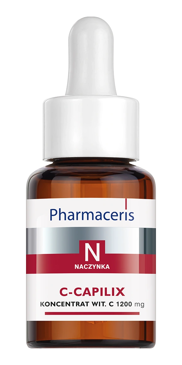Skóra naczynkowa i wrażliwa wymaga szczególnej ochrony przed stresem oksydacyjnym, utratą jędrności oraz nierównym kolorytem. PHARMACERIS N C-CAPILIX Koncentrat z witaminą C to specjalistyczna kuracja rewitalizująca, która skutecznie wzmacnia skórę podatną na zaczerwienienia, mikropodrażnienia i przedwczesne oznaki starzenia. Dzięki zaawansowanej formule opartej na stabilnej formie witaminy C, koncentrat przywraca cerze blask, poprawia elastyczność i wspiera naturalne mechanizmy regeneracyjne skóry.