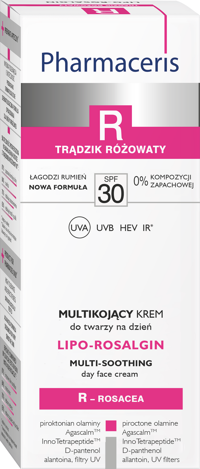 Krem na dzień do pielęgnacji skóry z objawami trądziku różowatego, ze skłonnością do zaczerwienień, trwałego oraz napadowego rumienia i zmian grudkowo-krostkowych. Krem zapewnia codzienną wysoką ochronę SPF 30, która zalecana jest przez dermatologów dla osób z tendencją do trądziku różowatego.