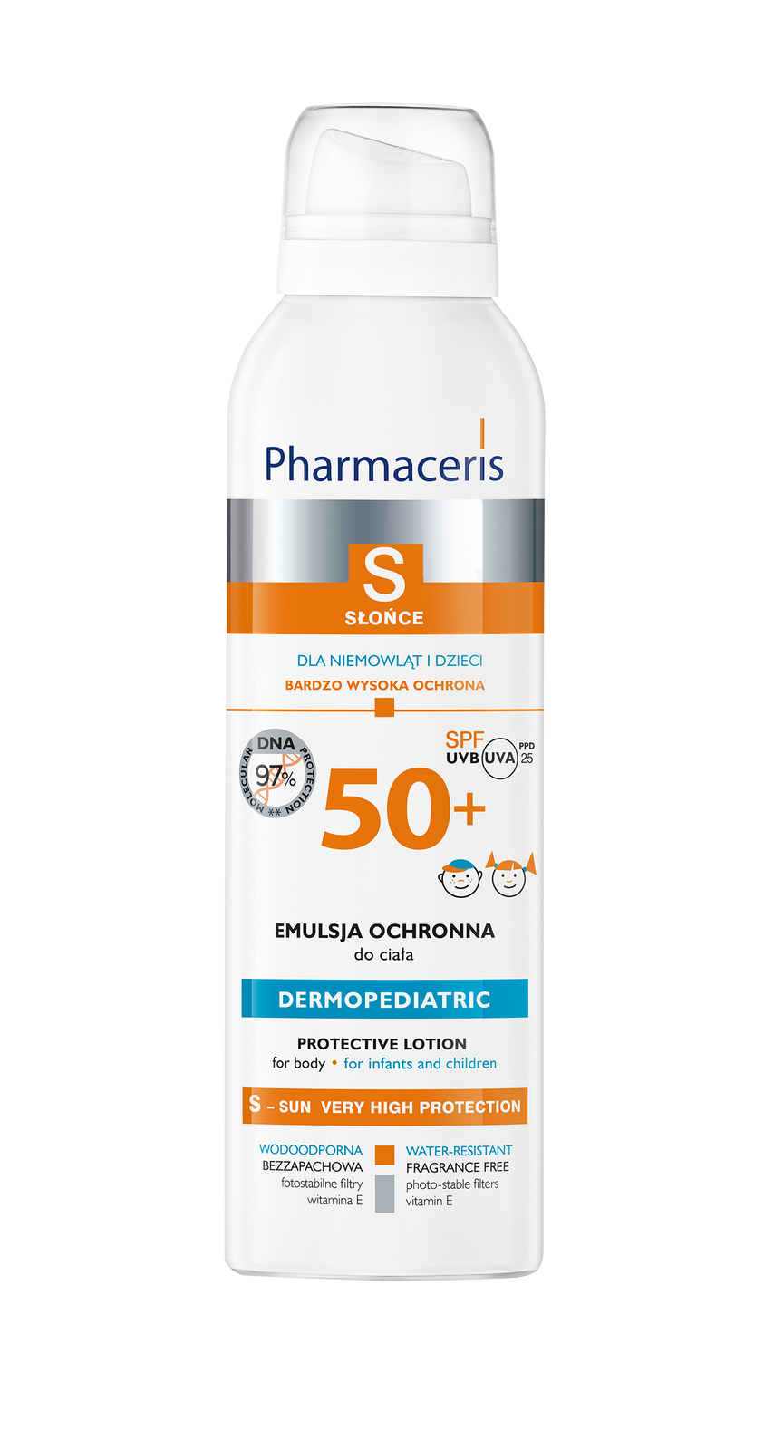 PHARMACERIS S DERMOPEDIATRIC Emulsja ochronna do ciała spray z multipozycyjną aplikacją 360° dla niemowląt i dzieci SPF 50+, 150ml