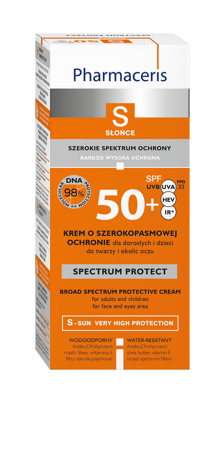 Lekki krem do twarzy o niekleistej konsystencji, zawierający bogaty skład szerokopasmowych filtrów przeciwsłonecznych. Chroni skórę dorosłych i dzieci od 6. miesiąca życia przed konsekwencjami nadmiernej ekspozycji na promieniowanie UVA, UVB, HEV i IR. Redukuje i łagodzi dokuczliwe objawy poparzeń słonecznych, takie jak: zaczerwieniona, spierzchnięta i boląca skóra, przebarwienia, wypryski posłoneczne, rogowacenie słoneczne itd. Główny składnik - kompleks AntileuDNAprotect - tworzy barierę, która wspomaga aktywność układu immunologicznego skóry, zapobiegając powstawaniu reakcji alergicznych. Krem nawilża i odżywia skórę oraz wspiera naturalne procesy jej regeneracji.