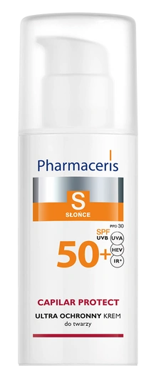 - Pharmaceris S wodoodporny krem do twarzy zapewniający bardzo wysoką ochronę przed szerokim spektrum promieniowania (UVA, UVB, HEV, IR). Dla osób dorosłych z cerą naczynkową i z trądzikiem różowatym. Testowany klinicznie i dermatologicznie.