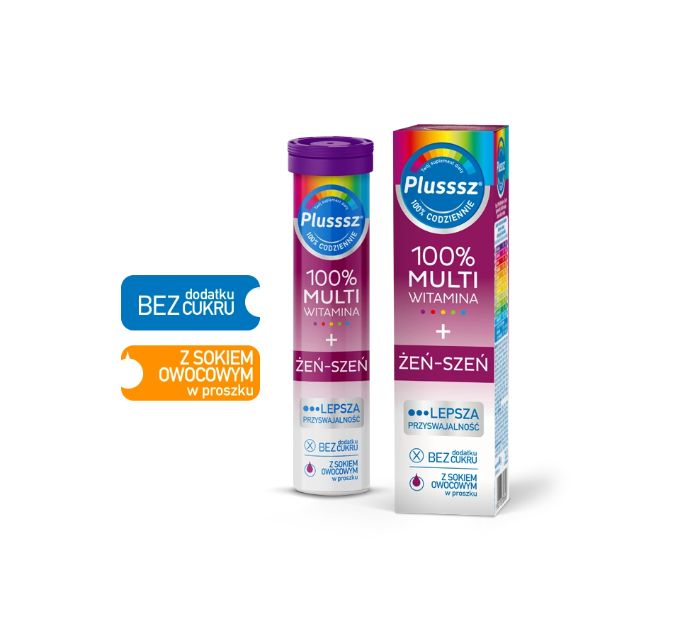 PLUSSSZ 100% MULTIWITAMINA + ŻEŃ-SZEŃ, 20 tabletek musujących
