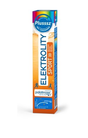 Plusssz Elektrolity SPORT 100% Complex to suplement diety przeznaczony dla osób aktywnych fizycznie. Preparat oparty jest na izomaltulozie, wolno uwalniającym się węglowodanie, które zapewnia stopniowy wzrost poziomu glukozy we krwi, co może pomóc w utrzymaniu energii podczas ćwiczeń i po ich zakończeniu. Zawiera również pełny zestaw elektrolitów, witamin i minerałów, takich jak witamina C, magnez, potas, wapń oraz mangan, wspomagając funkcjonowanie organizmu i regenerację mięśni.