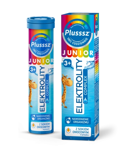 Odpowiednie nawodnienie ma ogromne znaczenie każdego dnia – szczególnie u dzieci, które szybko tracą płyny podczas zabawy, upałów czy podróży. Plusssz Junior Elektrolity Complex to suplement diety w formie tabletek musujących o przyjemnym, pomarańczowym smaku, stworzony z myślą o dzieciach powyżej 3. roku życia oraz dorosłych.