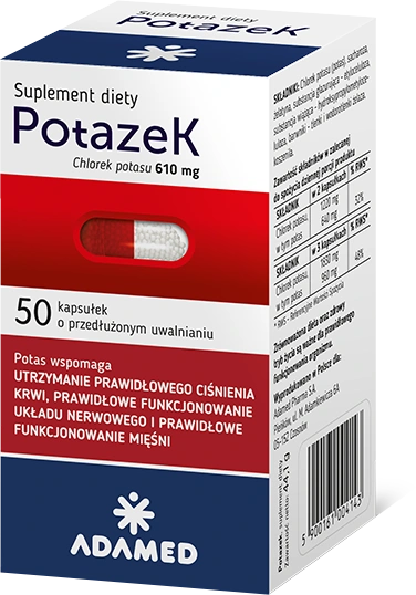 Preparat do codziennego suplementowania diety w chlorek potas. Potas, jeden z siedmiu makrominerałów, warunkuje prawidłową kurczliwość mięśnia sercowego, utrzymuje właściwe ciśnienie krwi oraz reguluje aktywność układu nerwowego.
