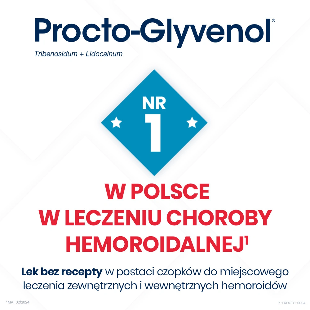 - Czopki Procto-Glyvenol łagodzą objawy hemoroidów wewnętrznych i zewnętrznych, takie jak ból, świąd i stan zapalny. Przed użyciem należy zapoznać się z ulotką lub skonsultować się z lekarzem.
