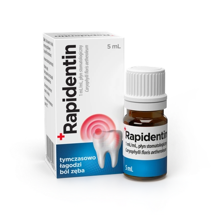 Rapidentin to lek przeznaczony do tymczasowego łagodzenia bólu zęba.  Ma postać płynu stomatologicznego, który działa bezpośrednio na ząb. Nakłada się go za pomocą nasączonego patyczka higienicznego na bolącą część zęba. Zabieg ten daje ulgę w bólu i pozwala dotrwać do wizyty u stomatologa