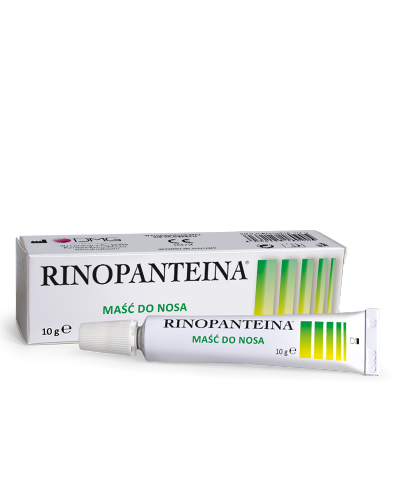 - Rinopanteina maść nawilżająca do nosa wspomaga proces regeneracji błony śluzowej nosa i zatok po urazach, krwotokach, zabiegach i w stanach suchości śluzówki.