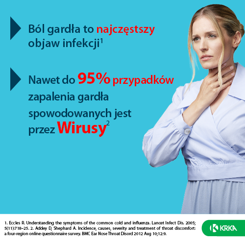 Infekcje gardła z bólem, drapaniem, chrypką.